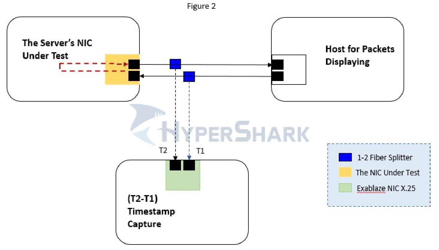 The TS host must be equipped with a network card that provide the function of timestamping. Generally, programmers usually use the program to record Timestamp, this is not recommended here, because it is distorted and the measure unit is not enough. This structure introduced here can exactly avoiding interference to the object under test.